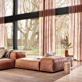 Waar vitrages vooral transparant zijn, draait het bij inbetweens om textuur. Denk aan stoffen met een lichte weving, een natuurlijke uitstraling of een subtiel spel van licht en schaduw.
