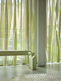 Inbetweens zijn lichtdoorlatende gordijnen met meer dichtheid en structuur dan vitrages. Ze filteren het licht op een subtiele manier, zonder de ruimte af te sluiten.