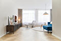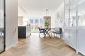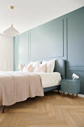 Wat betreft de raambekleding hebben we aan de wens van de klant voldaan door mooie gordijnen te installeren, waaronder vitrage en overgordijnen van Kantoner 13 House of Happiness. De klant had specifiek aangegeven dat ze geen "harde raambekleding" wilden, maar juist iets dat de ruimte gezellig en stijlvol zou maken. Het eindresultaat was fris en eigentijds, totaal niet ouderwets. We hebben ook veel aandacht besteed aan de details, zoals het zorgvuldig plaatsen van plinten, om alles er prachtig uit te laten zien.