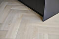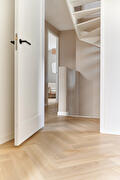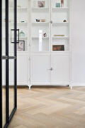 Bij het leggen van de vloer kozen we eerst voor mooie PVC vloeren van het merk Therdex, type 7001 in visgraatpatroon, wat er heel goed uitziet en lang meegaat. Echter, toen we begonnen met installeren, ontdekten we dat de vloer niet aan onze kwaliteitseisen voldeed. Gelukkig hebben we snel overlegd met de klant ter plaatse en zijn we erin geslaagd om op dezelfde dag nog een nieuwe vloer te regelen, zelfs al moesten we daarvoor naar de andere kant van het land. Dit laat zien hoe belangrijk klanttevredenheid en flexibiliteit voor John Mast zijn.
