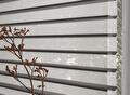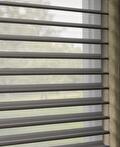 De zachte, zwevende lamellen tussen twee transparante stoflagen zorgen voor een bijzonder lichtspel. Het daglicht wordt gefilterd op een manier die de ruimte zachter maakt, zonder het zicht volledig weg te nemen.